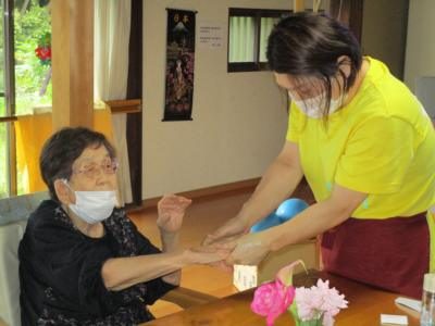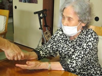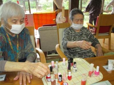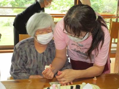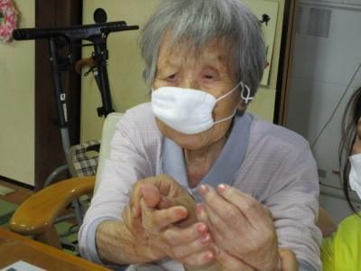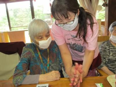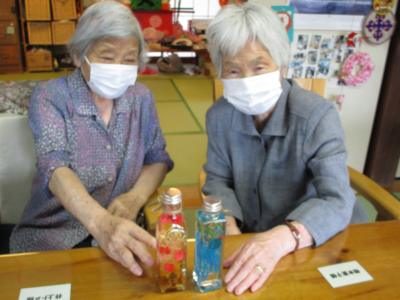 先日作ったハーバリウムを見て素敵だねと微笑む母達
