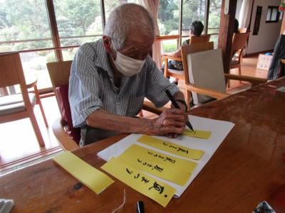 達筆なお父さんには『夏まつり』や『愛の幸望庵』と書いてもらいました