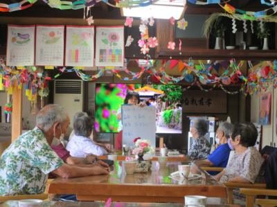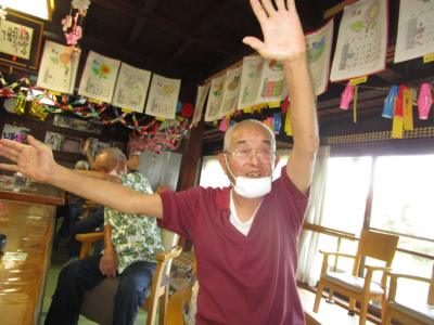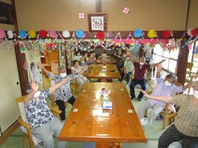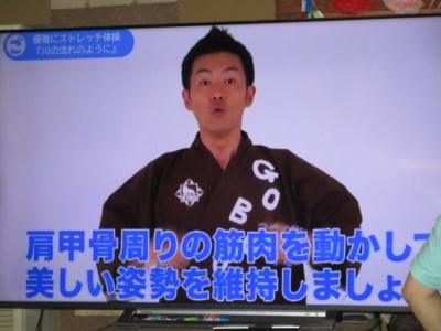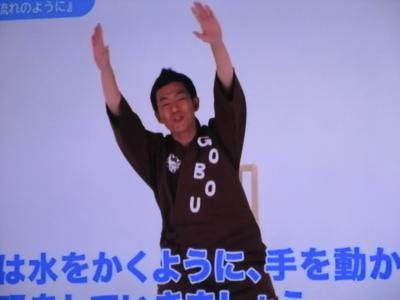 ごぼう先生の分かりやすい説明と、画面に映し出された文字と映像で身体を動かす皆さん・・・