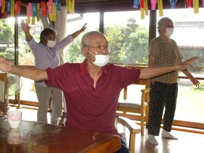 熱心にストレッチに取り組まれ、イキイキハツラツ