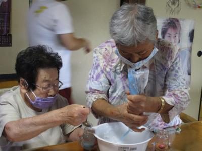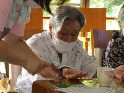 愛の幸望庵では、仲間と楽しく和気あいあいと手工芸等に日々取り組まれ、笑顔で充実のお時間をお過ごし頂いております。