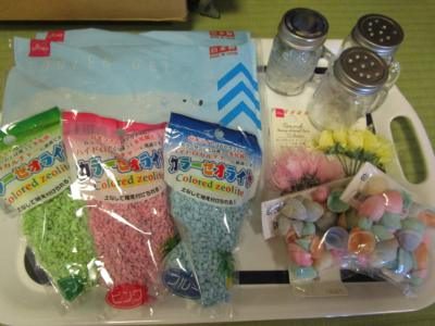 今日は画像の材料を使い【消臭アロマポット】作りを行います