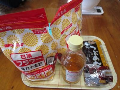 小麦粉、砂糖、重曹を計量していきます。