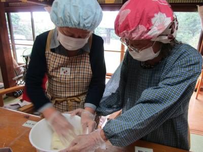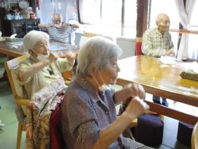 お饅頭が蒸しあがる間、体操で身体を動かしました