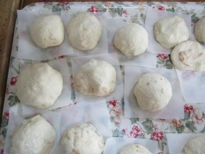 先程の生地であんこを包み、クッキングシートの上に