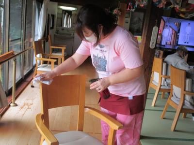 毎日しっかりと椅子や手すり等、感染症予防の為に室内