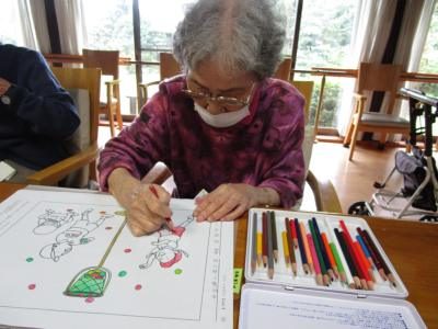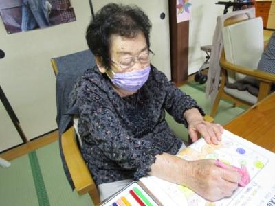 また百ます計算や数字塗り絵など、各々脳トレに取り組