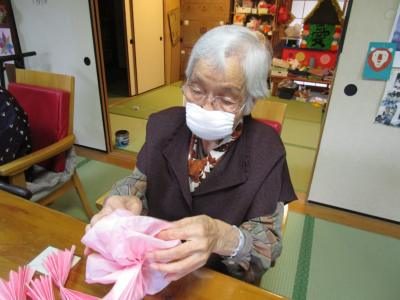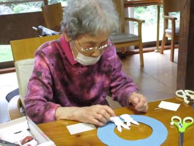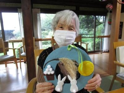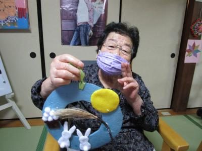 季節のリース作りに取り組まれる母はウサギを作ってい