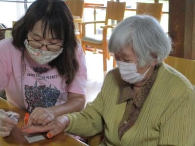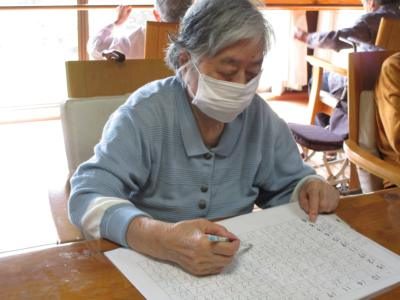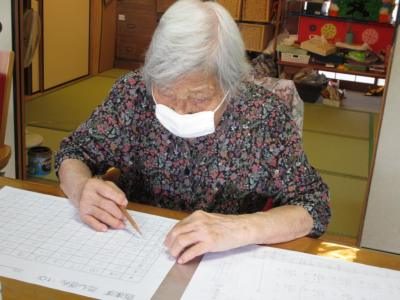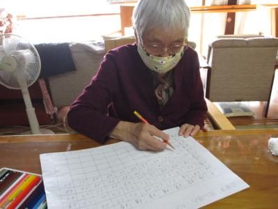 脳トレではことわざ問題や百ます計算に取り組まれまし