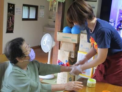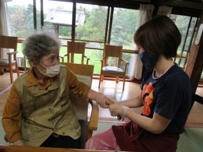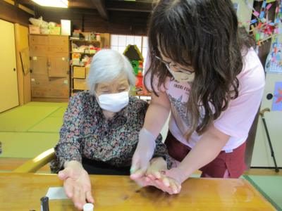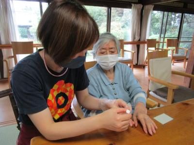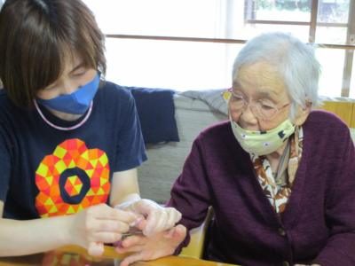 クリームを付けてハンドマッサージー (長音記号2)ー (長音記号2)ー (長音記号2)