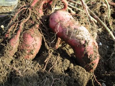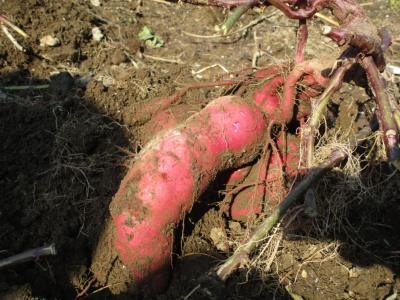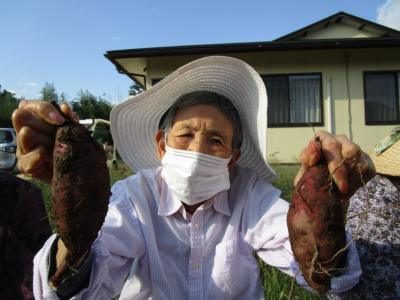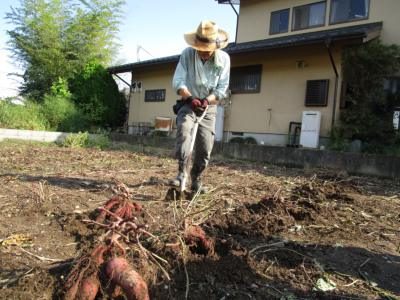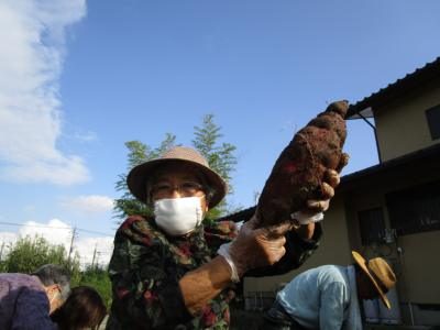 金子さんが採りやすい様に芋を掘り起こして下さいまし