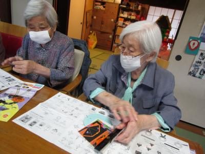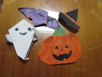 折り紙でカボチャの👻や🦇を折っていきますよ