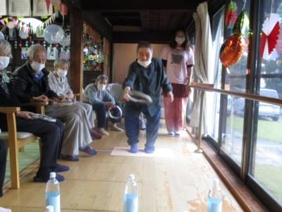 午後は恒例の輪投げ大会で身体を動かしましょう走る人
