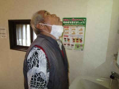 朝のルーティーン、手洗い、うがい、手指消毒を行いま