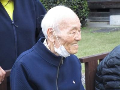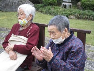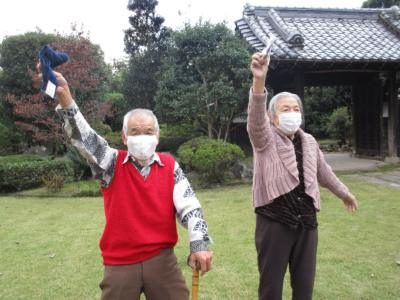 縁側にて機能訓練の様子をお伝えしようとカメラを構え
