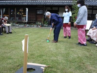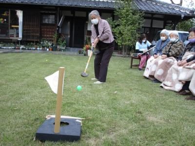 という事で、広い庭で青空の下パターゴルフ大会開催