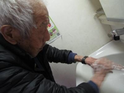 朝のルーティーン手洗い、うがい、手指消毒を行います。