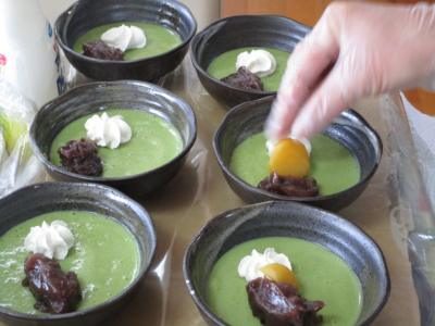 一方こちらはあみちゃんが手作りの抹茶ムースを作成中