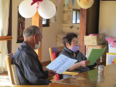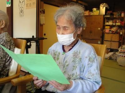 毎日行っている、ぼけたらあかんの唱和ですが、文字を目で追い声を出して行う事により脳を活性化することが出来ます。