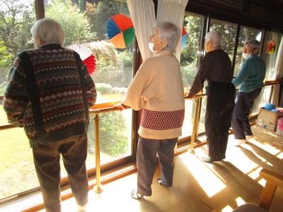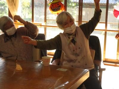 今日の体操は「旅の夜風」 「上を向いて歩こう」の二曲で体操を行いました