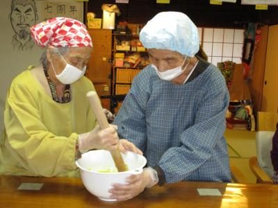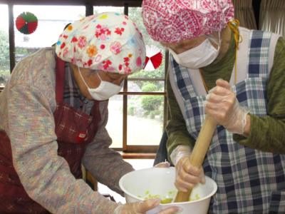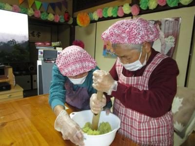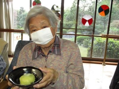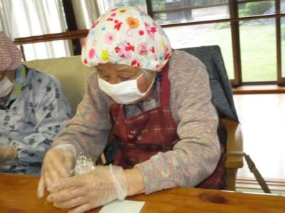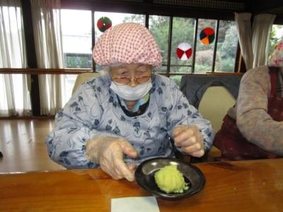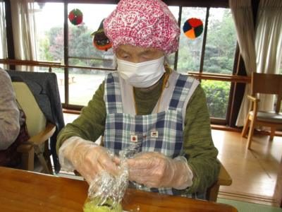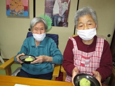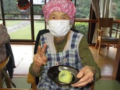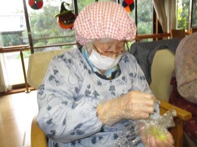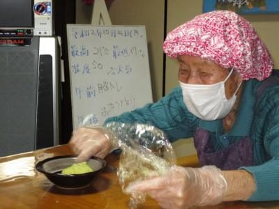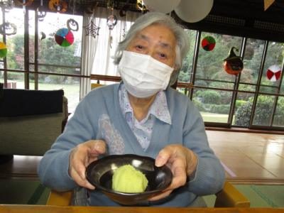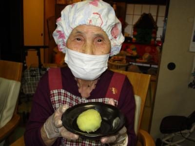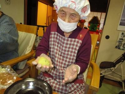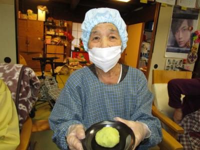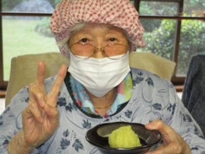 実は、前回のサツマイモを使った【茶巾絞り】が大好評でリクエストを頂いておりました。まだ召し上がられて無い利用者様にも是非召し上がって頂きたいわ