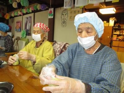 こちらでは、茶巾絞りの中に入れるあんこ玉をクルクル丸めています。