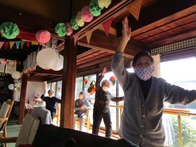 縁側の窓には以前みなさんと一緒に作成した飾りが飾ってありますぴかぴか (新しい)ぴかぴか (新しい)