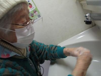 昼食前にも、しっかりと手指の消毒を行います。