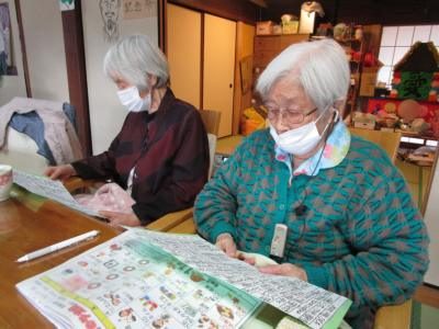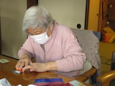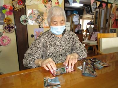 小さく丸めたお花紙を見せて下さる母です。