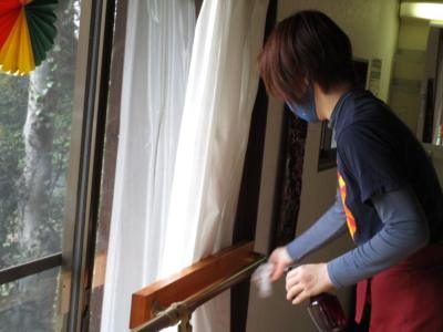 お昼休みにも、スタッフが念入りに消毒を行います。