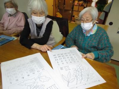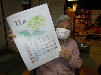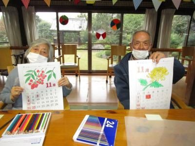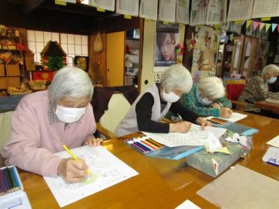 午後は、季節の暦の色塗りです