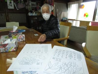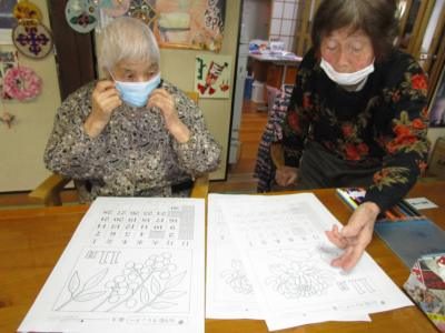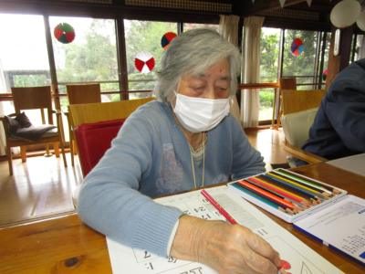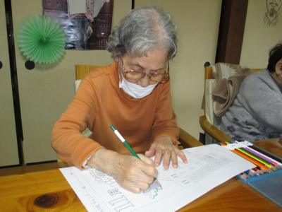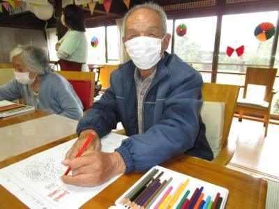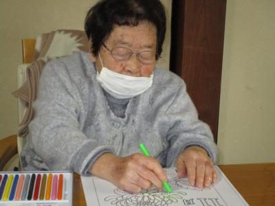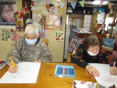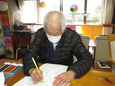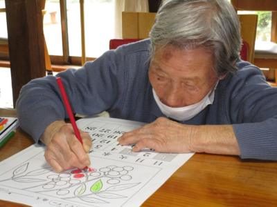 塗り絵に集中されながらも、途中では仲間と会話を楽しまれる父や母です。