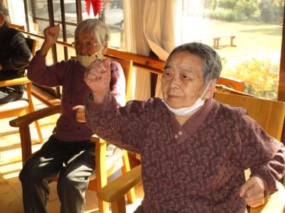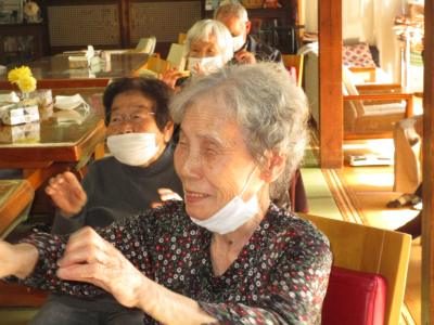 愛の幸望庵の木々も色付き始め、外を眺めると父母の目を