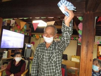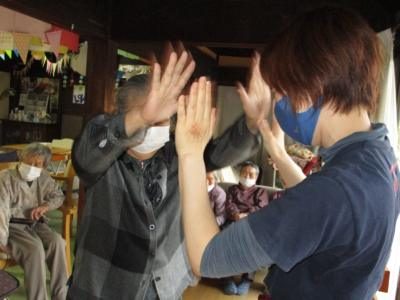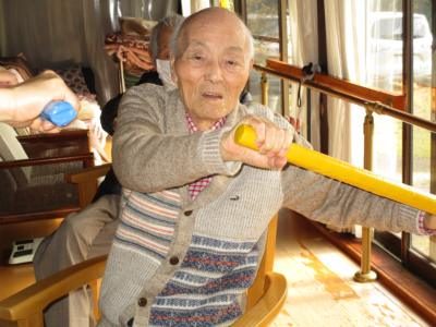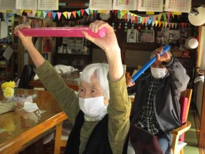 今度は久美ちゃん手作りの棒を使い肩の周りの筋肉を