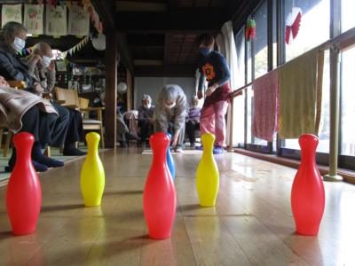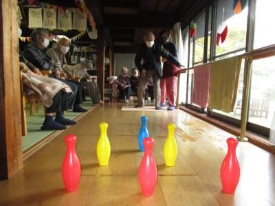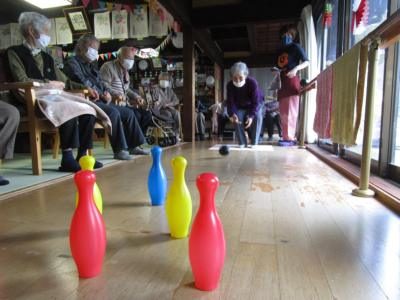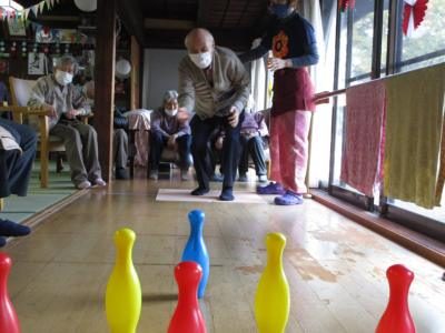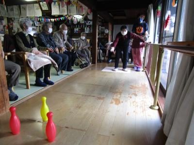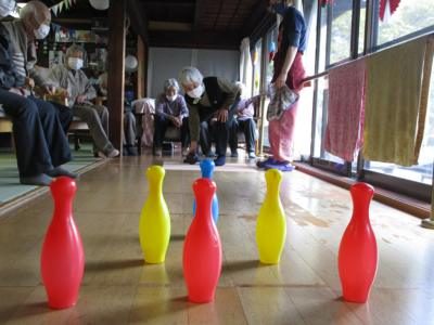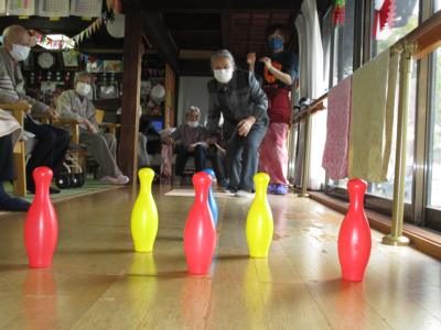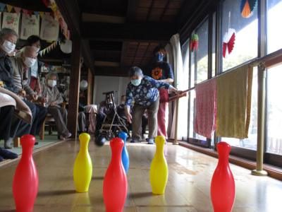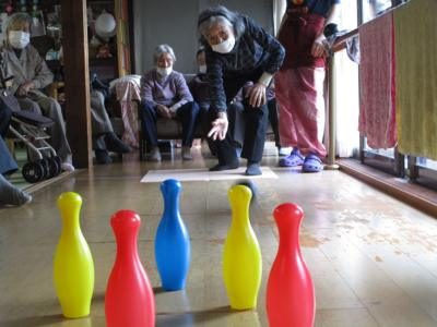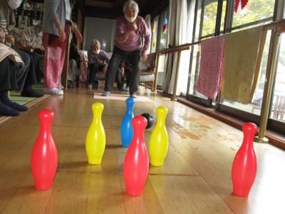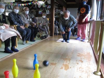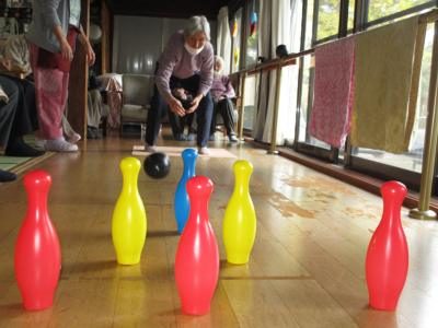 ピン目掛けてボールを投げる姿はまるでプロボウラーの