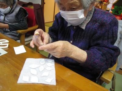 午後はリース作りチームと機能訓練チームに別れて交代で行われました