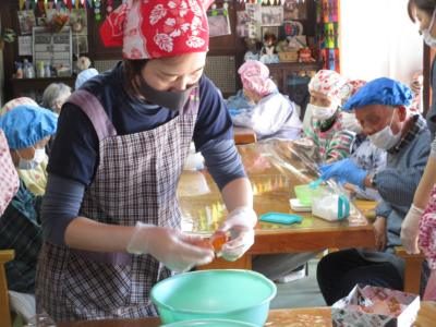 手洗い・手指消毒を行い身支度を整えたら早速クッキング