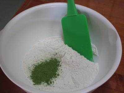 薄力粉はふるいにかけ抹茶粉を入れかき混ぜます