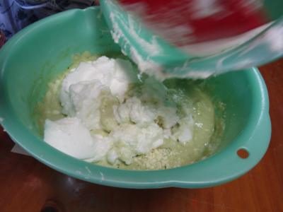 最後にメレンゲをつぶさない様に混ぜていき