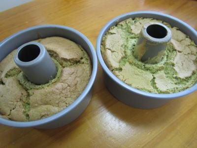 ふわっふわの抹茶シフォンケーキが出来上がりました