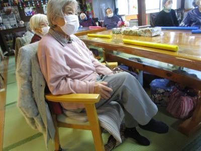 久美ちゃん手作りの棒を使って背筋を伸ばすストレッチ