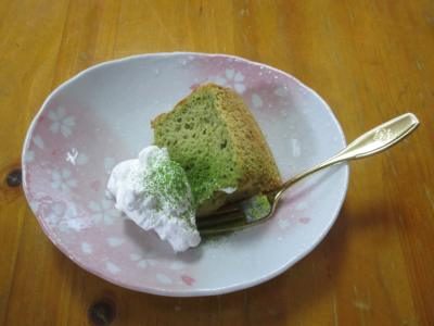 おやつはもちろん手作り抹茶のシフォンケーキ