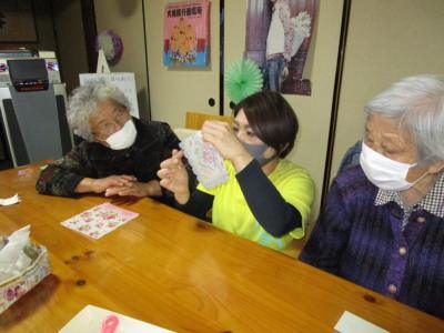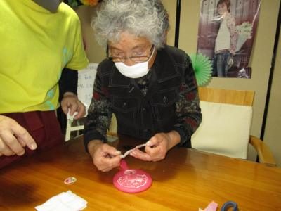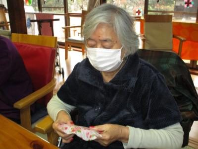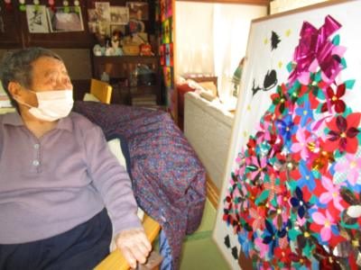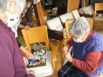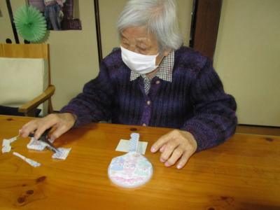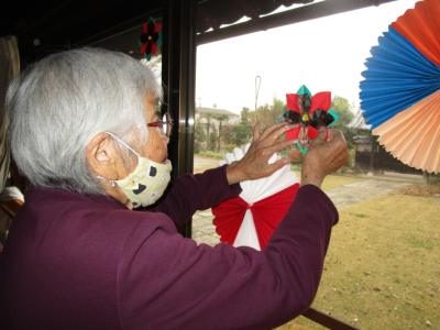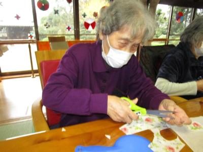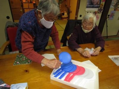 利用者様同士、テープを貼ったり、窓に貼り付けたりと仲良く行なって、冬の窓辺が素敵に装飾されました(*^_^*)