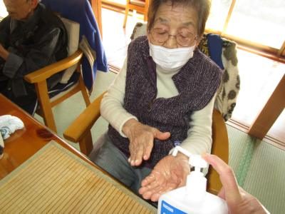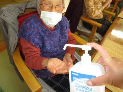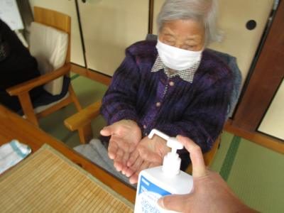昼食前にも手指消毒