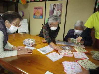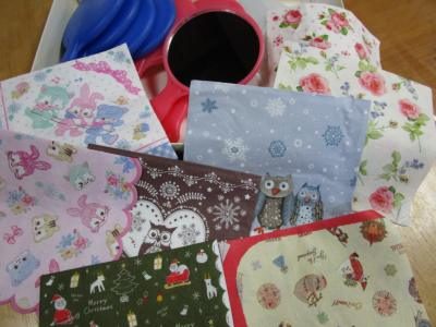 皆さん、それぞれ選んだ紙ナプキンの絵柄をカットし、出来上がりを想像しながら楽しく取り組まれていました(*^_^*)