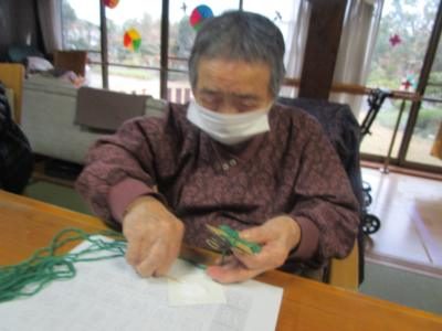 もみの木の形をした段ボールに毛糸を巻き巻き巻き巻き