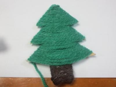 木の部分は緑の毛糸でダンボールが見えなくなるまで