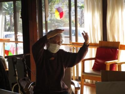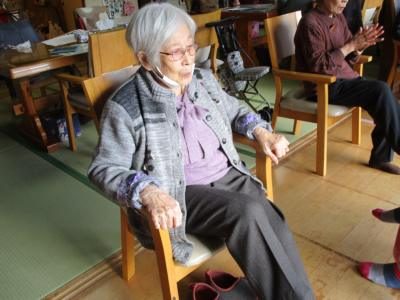 “この世の花”と“島のブルース”の音楽に合わせ身体をほぐ