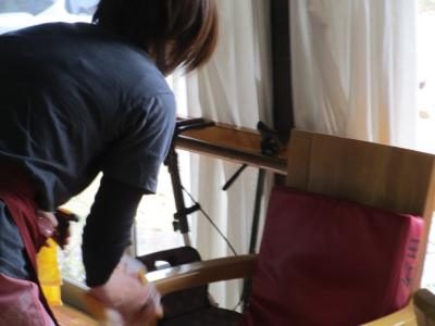 お昼休みは椅子や手すりなどの消毒を行います