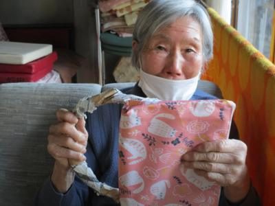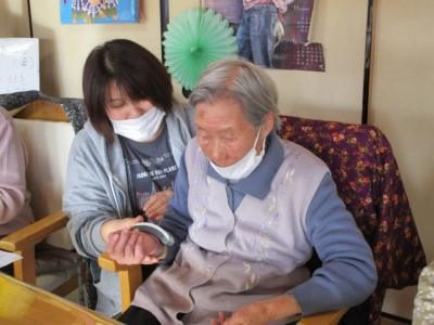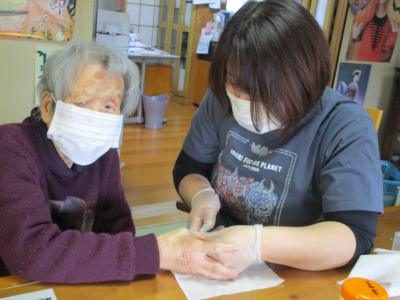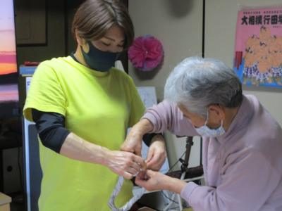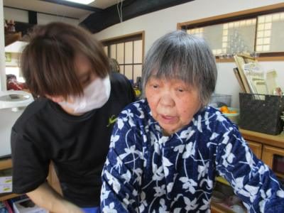 バイタルチェックや爪きりを行う看護師の久美ちゃんほっとした顔